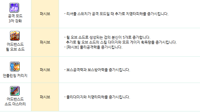 윌 오브 소드m>블레이즈 업 m>피어스 러쉬 m>임팩트 웨이브m>방어모드 1차 강화 m
