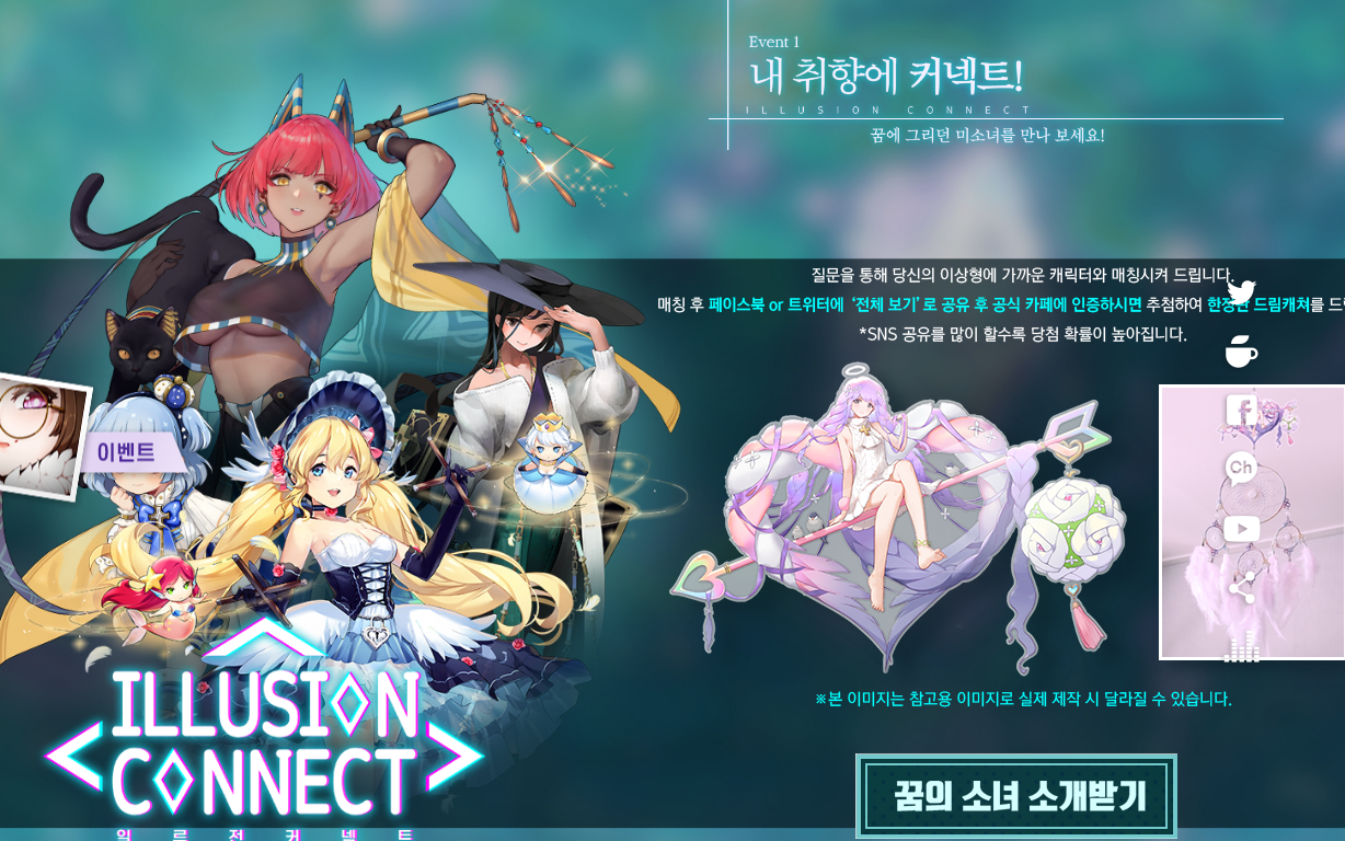 내 취향에 커넥트라는 이벤트를 진행 중인데 질문을 통하여 당신의 이상형에 가까운 캐릭터와