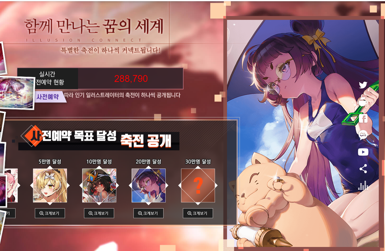 사전예약 목표를 달성하면 달성 수 마다 축전을 공개 한다고 합니다.