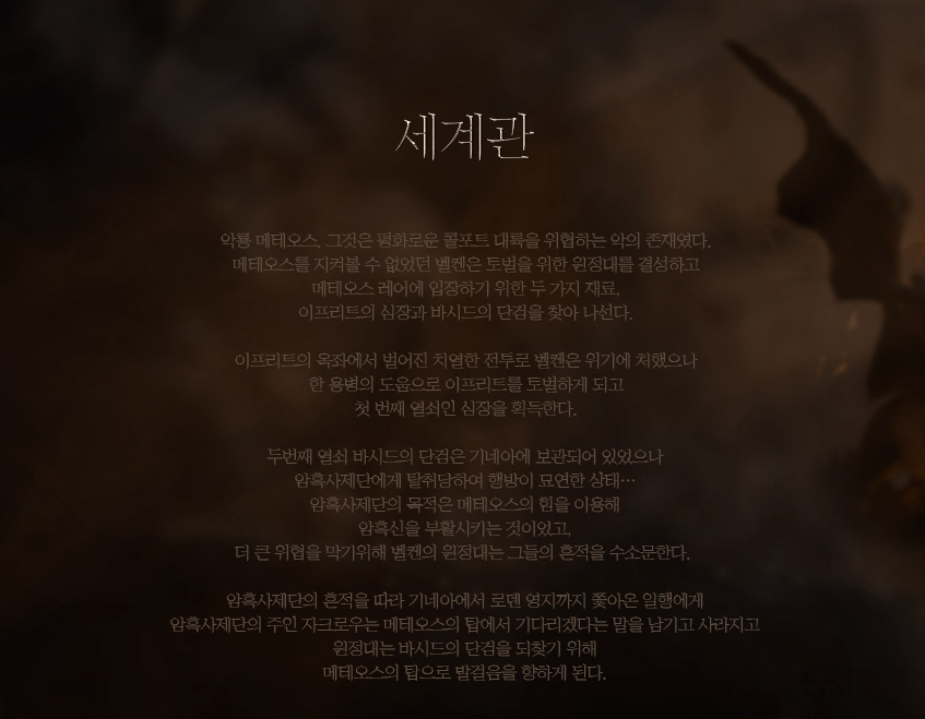 지켜볼 수 없었던 벨켄은 토벌을 위한 원정대를 결성하고 메테오스 레어에 입장하기 위한 두 가지