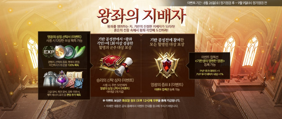 이벤트 기간 동안 기란 공성전에서 왕좌 각인에 성공한 혈맹의 군주님들께