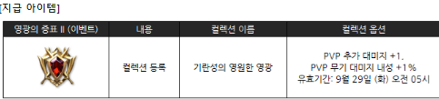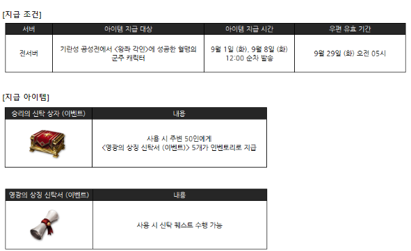 이벤트 기간 동안 기란 공성전에 참여한 혈맹에 소속된 용사님들께 영광의 증표 아이템이 지급