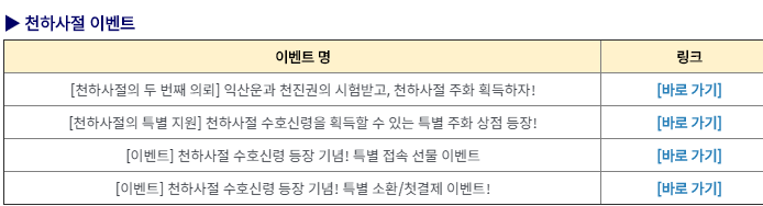 그리고 지금 천하사절의 이벤트만 4개를 진행하고 있더라고요.