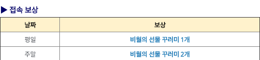 평일에는 1개,주말에는 2개씩 받으실 수 있으니 잊지말고 꼭 접속하셔서 받아 보세요!