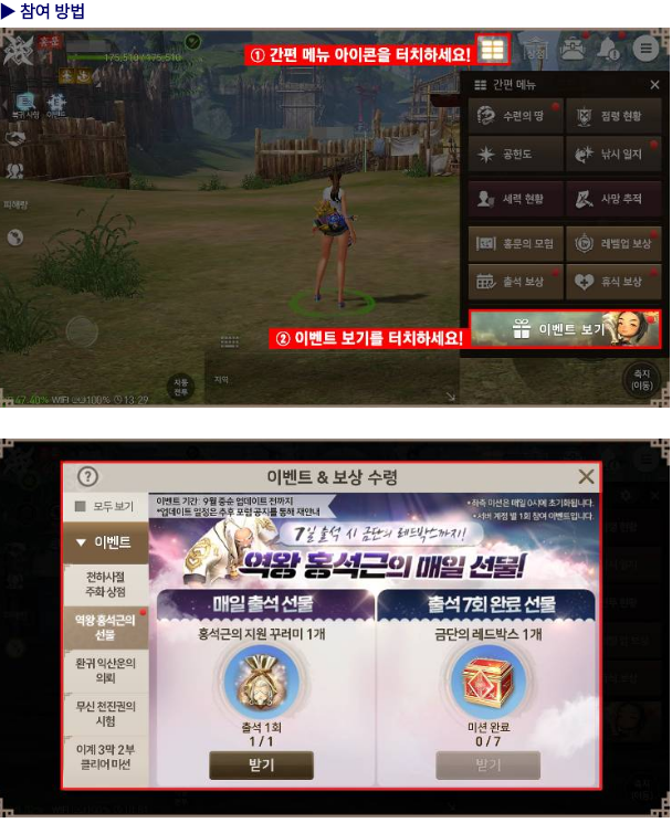 이벤트 기간 동안,오후12시~오후11시59분까지 사이에 1회 접속 시 보상을 지급하는 이벤트이죠.