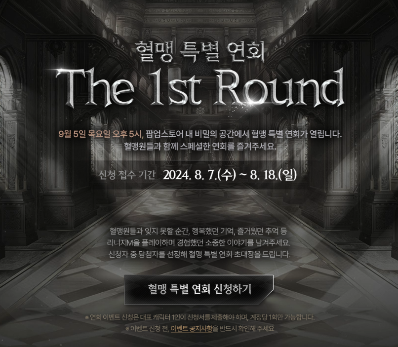 팝업 스토어 방문은 8월 21일에 열리는 방문 예약 링크를 통해 예약할 수 있으며, 선착순으로 진행될 예정입니다. 평소 리니지M의 콜라보 이벤트가 드물었던 만큼, 이번 이벤트에 대한 경쟁이 치열할 것으로 예상되므로, 유저들은 빠르게 예약을 진행하는 것이 좋습니다. 특히 9월 5일에는 혈맹끼리 연회를 즐길 수 있는 비밀의 공간이 준비되어 있어, 혈맹원들과 특별한 추억을 쌓고 싶은 유저들에게는 놓칠 수 없는 기회가 될 것입니다.