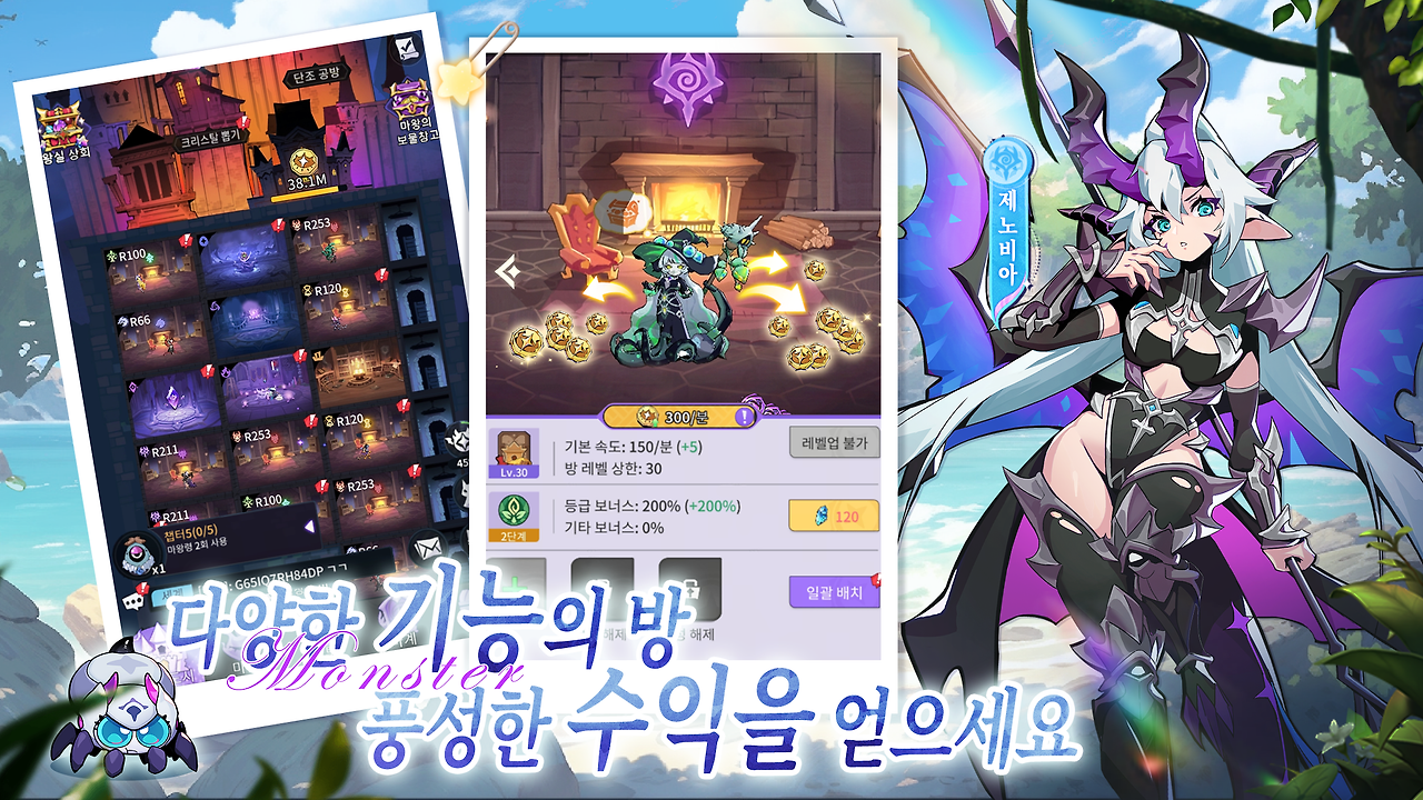 '마왕만만세'는 비겁한 용사의 음모로 인해 마왕이 알로 변해버린 세계관을 배경으로 합니다. 플레이어는 이 알을 모아 부화시킨 마물들을 이끌고 마왕성의 영광을 되찾기 위한 모험을 떠나게 됩니다. 다양한 마물을 수집하고, 이를 전략적으로 팀에 배치해 합성 및 성장시키는 것이 게임의 핵심 요소입니다. 특히, 캐릭터 수집 및 성장 요소를 중심으로 한 RPG 장르를 선호하는 유저들에게 매력적으로 다가갈 것입니다.