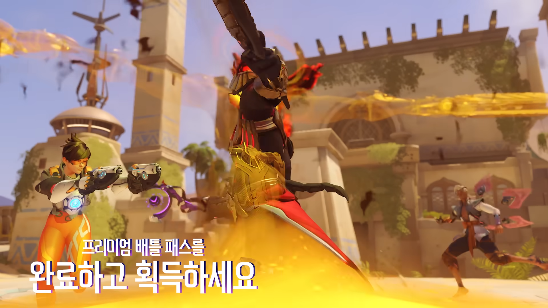 이와 함께 격돌 모드를 위한 두 개의 신규 전장도 추가되었습니다. 먼저, 오버워치의 대표 전장 중 하나였던 ‘아누비스 신전’이 리메이크되어 ‘아누비스의 왕좌(Temple of Anubis)’로 돌아왔습니다. 이곳에서 플레이어들은 고대 이집트로 돌아가 아누비스 왕좌에 봉인된 옴닉 사태의 원인인 위험한 인공지능과 맞서 싸울 수 있습니다. 또 하나는 추억의 맵인 ‘하나무라’를 재구성한 ‘하나오카(Hanaoka)’로, 과거의 향수를 느끼면서도 새롭게 변신한 전장을 경험할 수 있습니다.