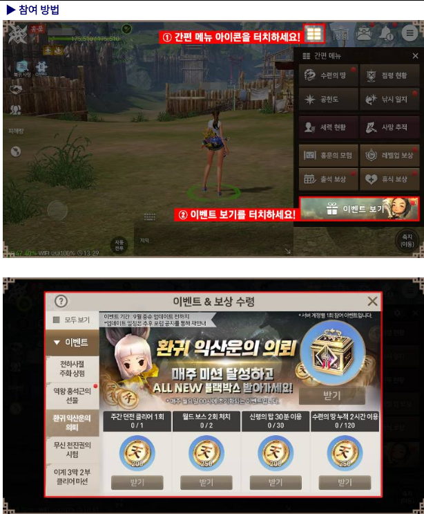 이 이벤트들 다 참여해서 많은 아이템과 보상을 획득 해보세요.