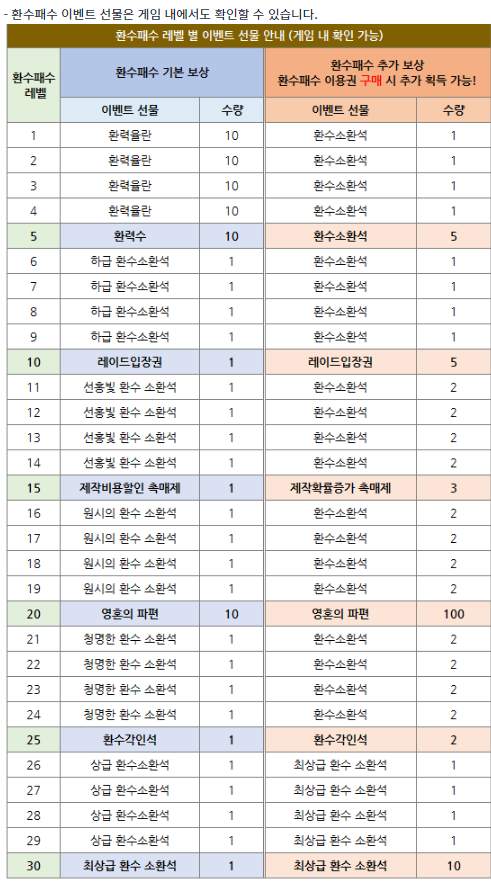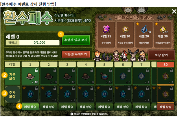 환수패수 이벤트 레벨을 달성하고 달성 레벨에 따라서 이벤트 선물을 획득 해보세요!