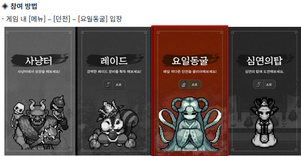 이번 이벤트는 매일 색다른 던전,요일동굴을 점령하라 이벤트입니다.