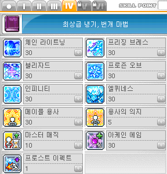 - 아이스 스트라이크 마스터: 썬콜의 핵심 광역 스킬입니다. 처음에는 범위가 좁다고 느껴질 수 있지만, 마스터할수록 넓은 범위를 공격하며 몬스터를 얼리는 효과까지 있어 매우 유용합니다. 덕분에 물약 소모를 줄이며 안정적인 사냥이 가능하게 해주는 효자 스킬입니다.