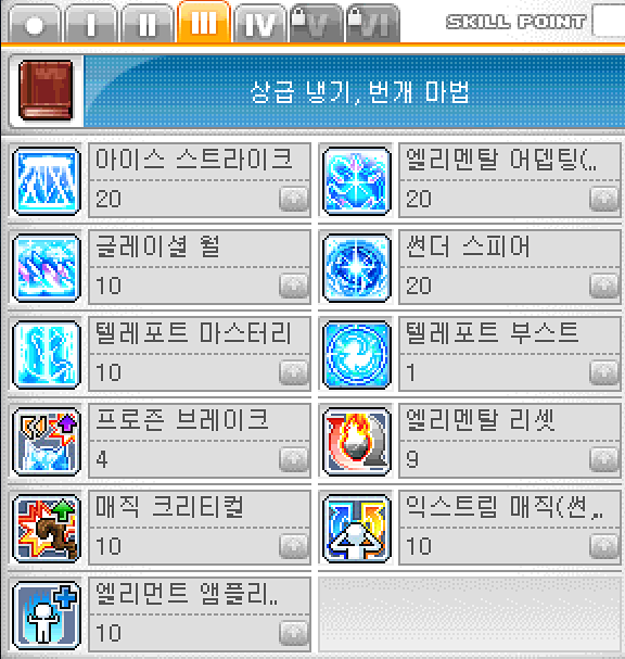 - 엘리먼트 엠플리피케이션 마스터: 마나 소모량이 2배로 증가하지만, 전체적인 데미지를 1.4배나 상승시켜주는 강력한 버프입니다. 빠른 사냥을 위해 반드시 마스터해야 합니다.