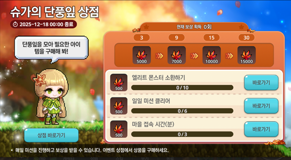 2. 시즌 이벤트 공략: 슈가의 단풍잎 상점 (12월 18일까지)