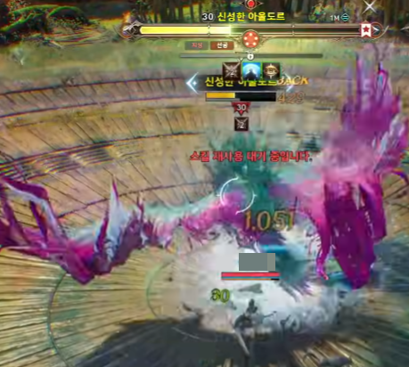 대응법 2: 광역 장판 회피: 모션 후 약 7~8초 뒤, 광범위한 장판형 공격이 보스 주변에 떨어집니다. 이 공격의 피해량이 매우 높으니 미리 외곽으로 빠져서 회피해야 합니다.