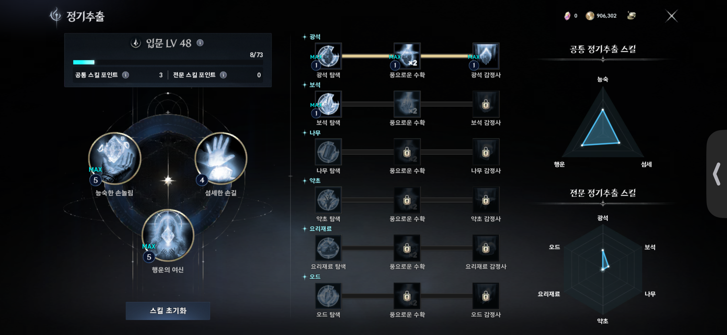 약초 탐색 · 풍요로운 수확 · 약초 감정사 or 광석 탐색 · 광석 감정사