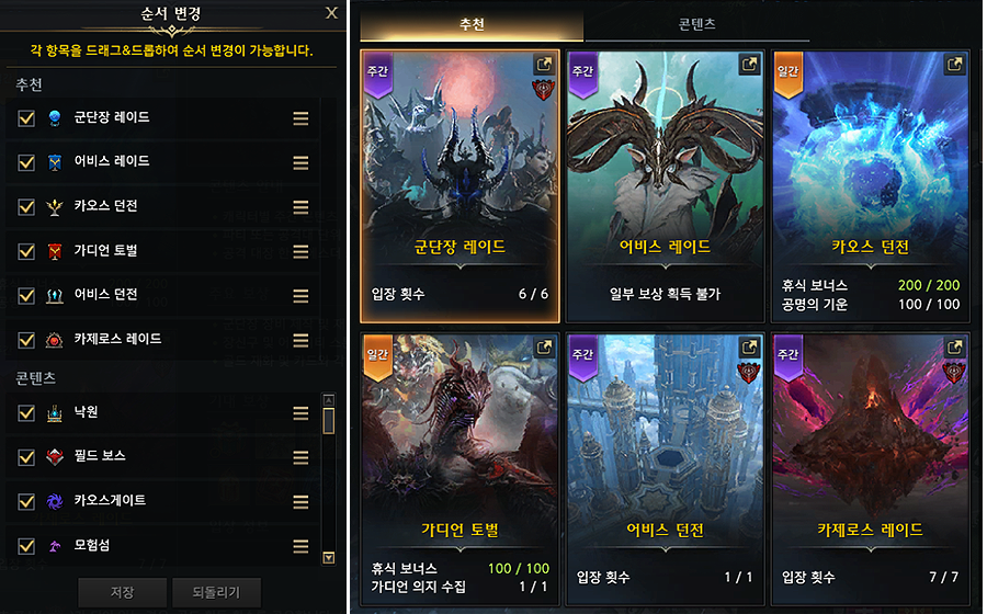군단장 및 어비스 던전 역시 주간 골드 수급의 핵심입니다.