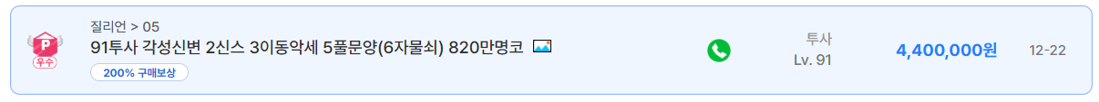 이 가격대는 “메인 계정은 있는데 성능 업그레이드를 노리는 유저층”과 “현질로 시간 단축하려는 유저”가 겹치는 핵심 구간이라 네고 경쟁과 매물 간 스펙 비교가 가장 심하다.