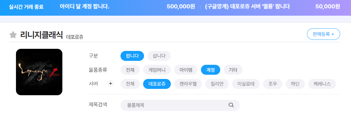 리니지 클래식이 다시 주목받고 있다. 신규 업데이트나 대형 이벤트 때문만은 아니다. 최근 아이템매니아를 중심으로 확인되는 거래 흐름을 보면, 리니지 클래식의 핵심 가치는 장비보다도 ‘닉네임과 계정’ 그 자체로 이동하고 있다는 점이 분명하게 드러난다. 특히 데포로쥬 서버는 그 중심에 서 있다.