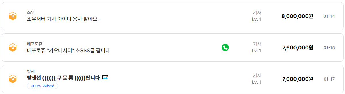앞으로도 기사 계정은 신규 유입 / 복귀 유저 / 서버 이동 타이밍 이 세 가지 수요가 겹칠 때마다 다시 한번 거래량이 집중될 가능성이 높다.