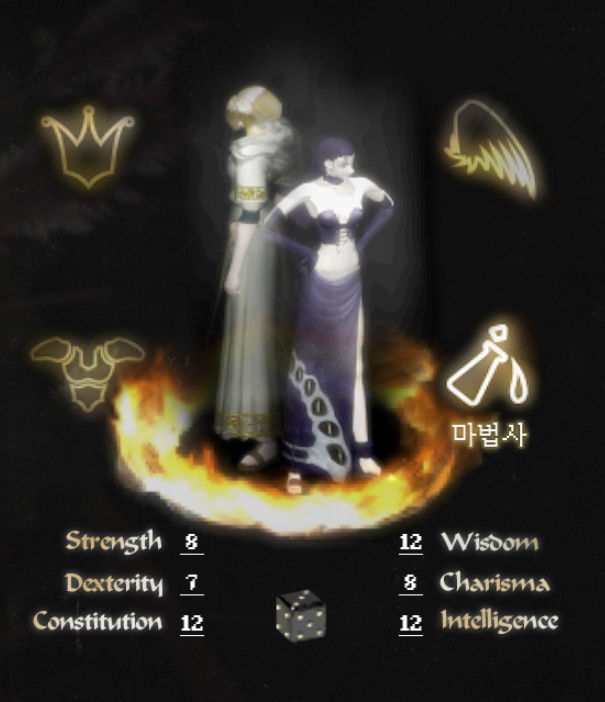 인트법사 (INT 18, WIS 18, CON 16): 마법 대미지와 MP 회복에 집중한 정석적인 마법사 빌드입니다.