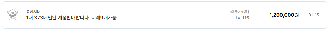 그보다 한 단계 높은 구간은 400억 이상 고스펙 계정입니다. 1군 400억 벞교 세팅을 갖춘 초고스펙 여넨마 계정은 270만 원에 등록되었으며, 373 메인딜 계정이나 디레 여러 개를 운용할 수 있는 다캐릭 계정은 120만 원 이상으로 형성되어 있습니다. 이 가격대는 단순 캐릭터 하나가 아닌, 계정 전체의 성장 효율과 레이드 고정 파티 운영까지 고려하는 유저층을 타겟으로 합니다.