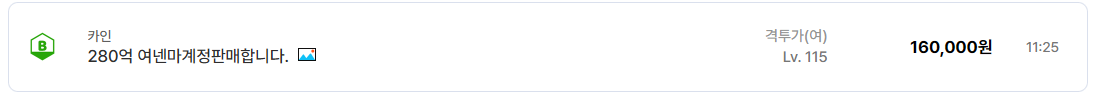 가장 먼저 눈에 띄는 구간은 100억~300억대 여넨마 계정입니다. 카인 서버 기준 280억 여넨마 계정이 16만 원에 등록되어 있으며, 통합 서버에서는 300억대 넨마 계정이 35만 원 선에서 거래 종료된 사례도 확인됩니다. 이 구간의 계정들은 일반적인 레이드, 상급 던전 입문 및 파밍용으로 적합한 세팅이며, 과한 투자 없이 바로 플레이가 가능하다는 점에서 수요가 꾸준합니다.