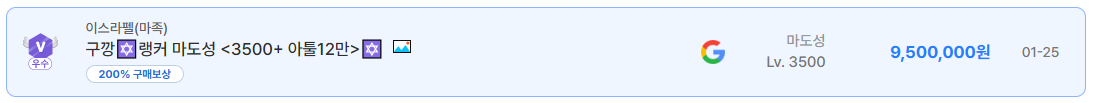 최근 아이템매니아에서 확인된 아이온2 계정 거래 사례를 보면 서버별, 종족별, 클래스별 선호도가 꽤 뚜렷하다. 이스라펠 서버의 마족 계정은 여전히 상위권 가격대를 유지하고 있는데, 실압근 3650 이상, 수호성 외형 작업 완료, 기룡 장검 추가 가능 구성의 계정이 약 790만 원에 거래되었다. 같은 서버에서 마도성 3500 이상, 아툴 12만 이상 세팅된 랭커급 계정은 950만 원까지 형성되어 있어 고스펙 마법 계열 직업의 수요가 높다는 점을 보여준다.