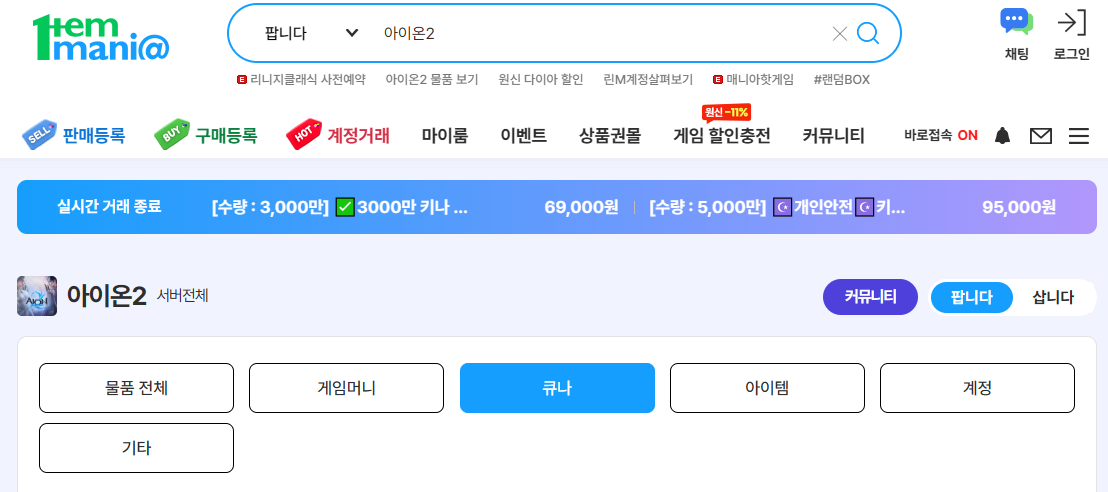 아이온2가 본격적으로 유저 풀을 넓혀가면서 가장 빠르게 반응한 영역은 단연 재화 거래다. 특히 큐나는 장비 강화, 콘텐츠 소모, 거래소 이용 등 거의 모든 성장 루트에 직결되기 때문에 수요가 꾸준히 유지되고 있다. 이번 글에서는 아이템매니아에 실제로 등록되고 거래 완료된 데이터를 기반으로 현재 아이온2 큐나 거래 흐름과 서버별 시세 특징을 정리해본다.