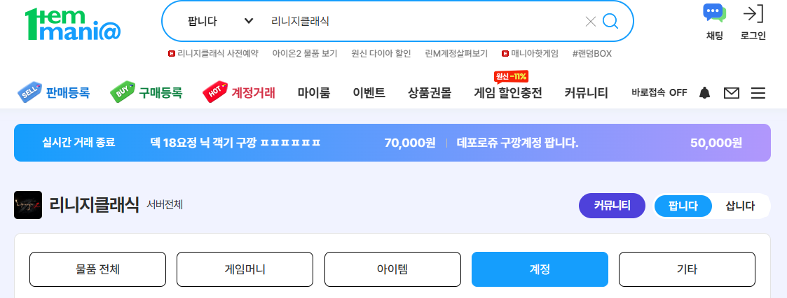 리니지 클래식 계정거래 및 아이템거래는 아이템매니아 추천