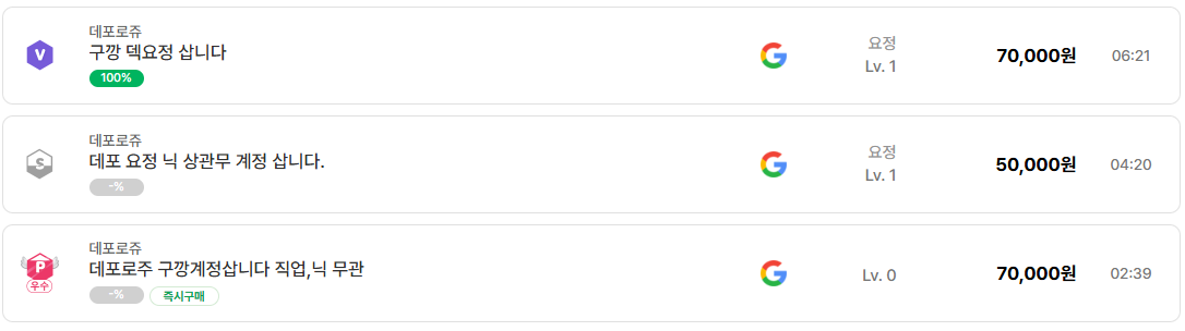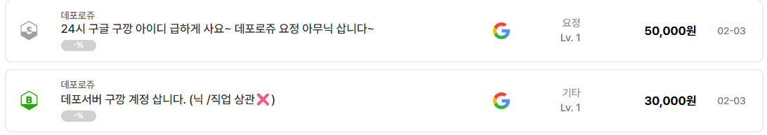 리니지 클래식에서 데포로쥬 서버는 꾸준히 계정 거래가 활발한 서버로 꼽힌다. 최근 실제 거래 게시글들을 살펴보면 특정한 흐름이 매우 명확하게 드러난다. 바로 구글 깡통 계정, 이른바 ‘구깡 계정’에 대한 집중적인 구매 수요다.