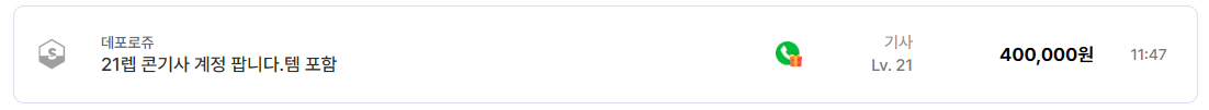 데포로쥬 서버에서 21레벨 콘기사, 템 포함 계정이 400,000원에 등록되었습니다. 단순 1레벨이 아닌 20레벨 이상 계정은 기본적으로 수십만 원 이상 가격이 붙는 구조입니다. 15레벨 한글자 닉 ‘쌤’ 기사 계정이 100,000원, 12레벨 힘기사 ‘call’이 80,000원에 올라온 사례도 있습니다. 이 구간은 직접 육성 시간을 줄이려는 수요가 중심이며, 장비 포함 여부에 따라 체감 가치는 크게 달라집니다.