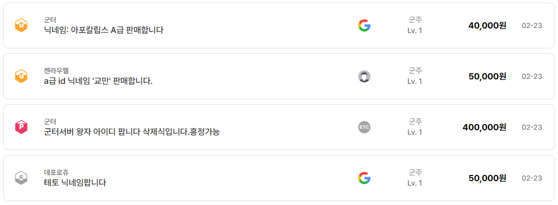 - 서버별 동일 닉네임 가격 차이 매우 큼