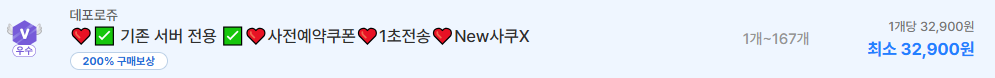 - 사전예약쿠폰 1개당 32,900원 (1~167개)