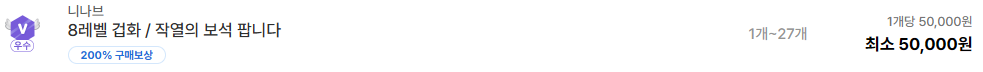 또 다른 사례로 니나브 서버에서는 8레벨 겁화 보석 2개가 약 9만5천원에 올라와 있다. 개당 가격 기준으로 보면 약 4만7천원 수준으로 계산된다. 여러 개를 묶어서 판매하는 경우 이런 방식으로 가격이 조금 낮게 설정되는 경우도 있다.