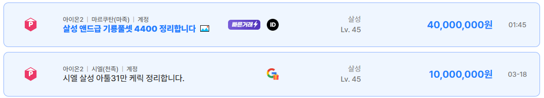실제 거래 데이터를 보면 빠른거래 표시나 우수회원 조건이 붙은 매물들이 많습니다 이는 거래 안정성을 강조하는 요소입니다