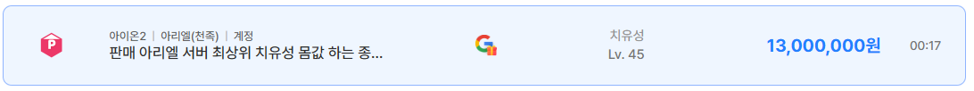 또한 치유성 종결 세팅 계정은 약 1300만원 수준으로 형성되어 있고 PvP 중심 치유성 계정 역시 990만원대에서 거래되고 있는 것이 확인됩니다