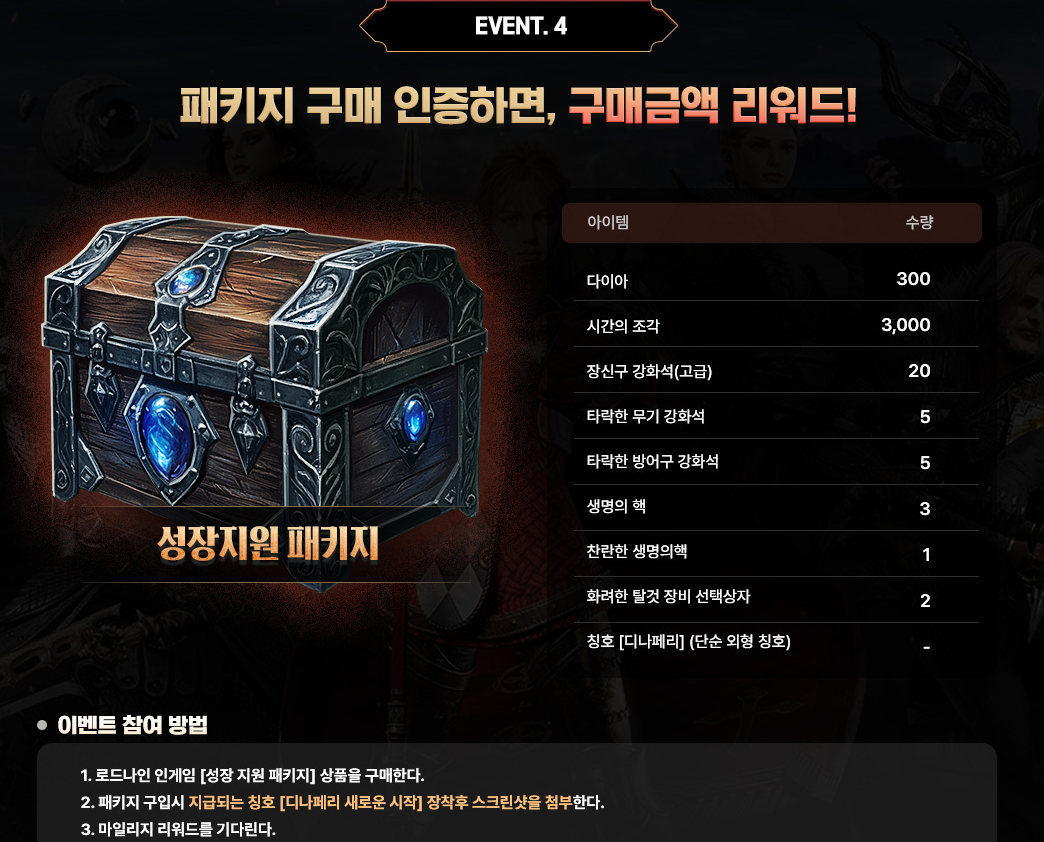 이벤트 4. 패키지 구매 인증 보상