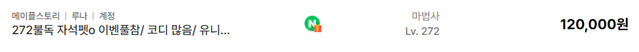 루나 서버: 272레벨 불독 캐릭터가 자석펫을 보유하고 코디 아이템이 많음에도 불구하고 120,000원 선에서 거래가 형성된 사례가 있습니다. 이는 유니온 수치가 6000대로 상대적으로 낮아 베이스 성장에 차이가 있기 때문으로 분석됩니다. 반면 유니온 9000을 달성한 270레벨 팬텀 계정은 기초가 탄탄함에도 100,000원에 올라오는 등 급처 매물에 따라 시세 변동이 큰 편입니다.