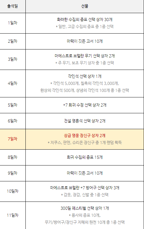 영웅 등급 마석,상급 영웅 장신구 상자,300일 페스티벌 선택 상자를 포함한 다양한 선물을 놓치지 마세요!
