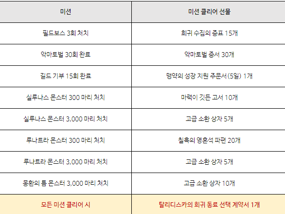 몬스터 처치 미션을 수행하고 희귀 동료 선택 계약서 등 다양한 선물을 수령 해보세요!