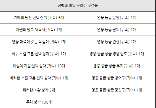 지혜의 원천 선택상자,영웅 등급 문양,차원의 망토 제작서,