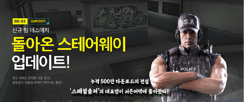 이번 업데이트는 누적 500만 다운로드의 전설 스페셜솔져의 대표맵이 서든어택으로 돌아왔다고 합니다.