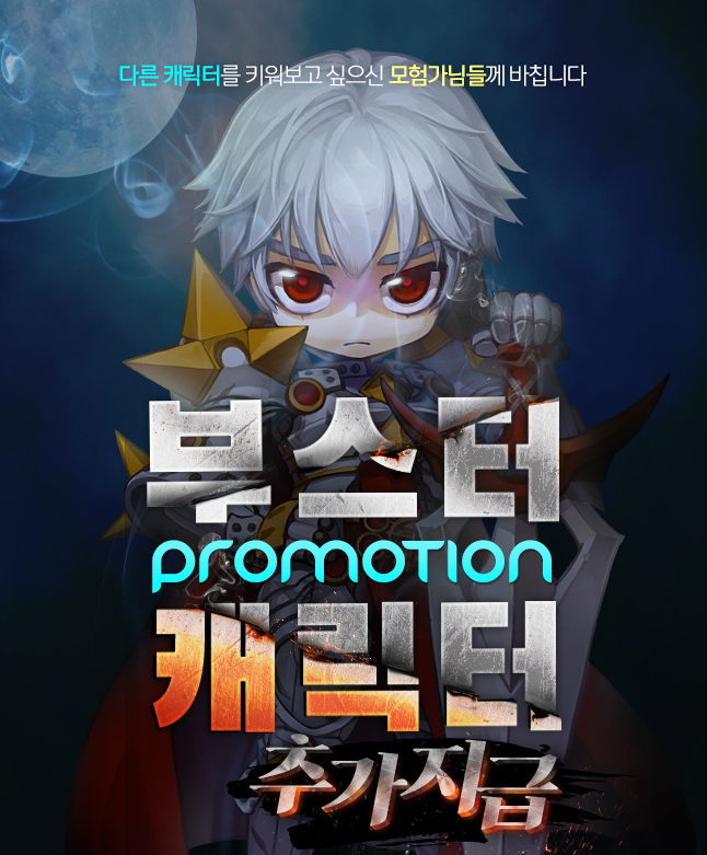 조건은 2회 부스터 프로모션 캐릭터를 130레벨 이상 육성하신 모든 계정 캐릭터는 명의 당 1회만 추가