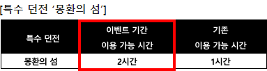 다음 이벤트는 매일매일 2배로 즐겨라! 몽환의 섬 시간 증가 이벤트입니다.