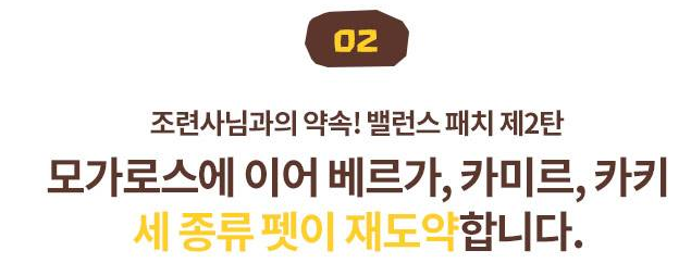 모가로스에 이어서 베르가,카미르,카키 세 종류 펫이 재도약을 한다고 해요.