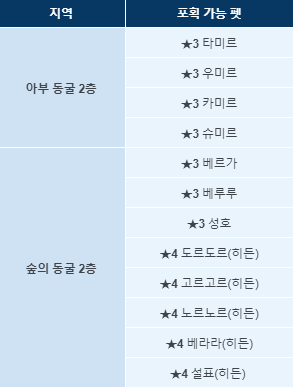 숲의동굴2층은 조련사 레벨이 60을 넘어야합니다.