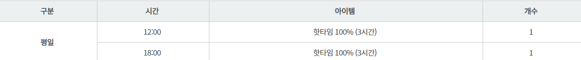 이벤트 기간 동안 언제든 핫타임 효과를 경험할 수 있는 핫타임 아이템을 드린다고 합니다.