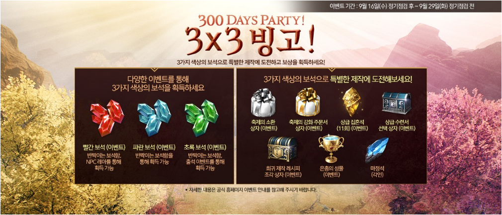 다음 이벤트는 300DAYS PARTY 3X3 빙고 이벤트입니다.