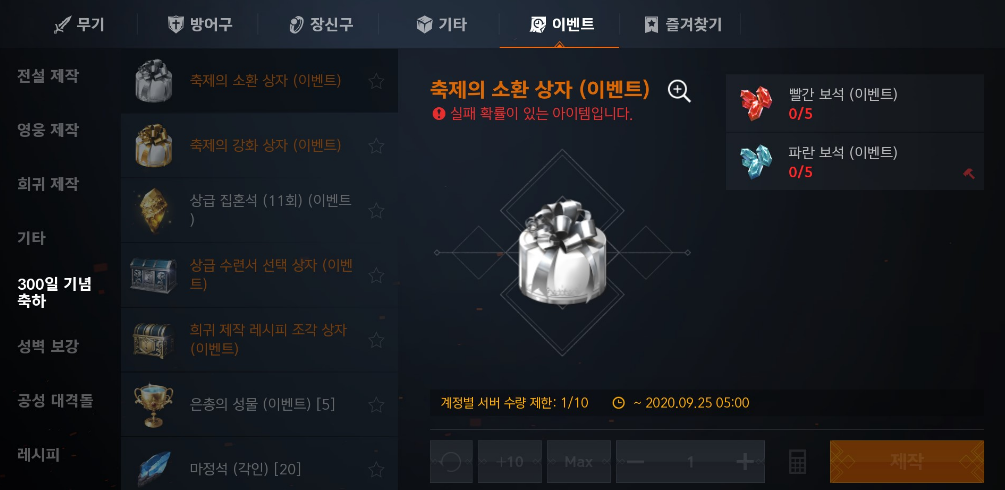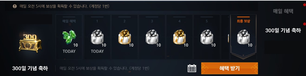 매일 추가 혜택을 통하여 축제의 소환 상자와 축제의 강화 주문서 상자를 10개씩 격 일로 획득